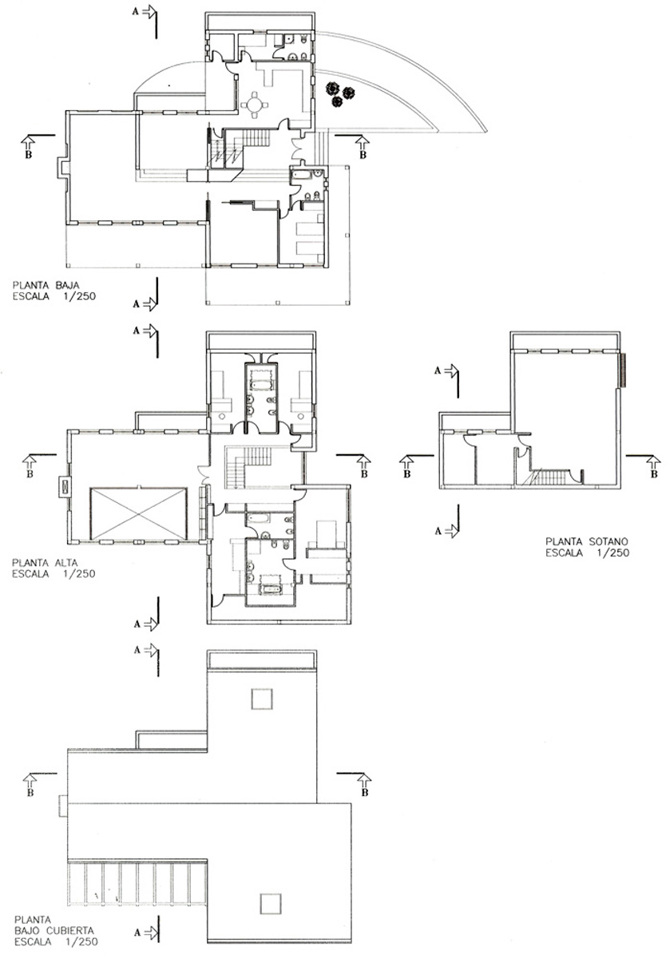 Vivienda familiar y vivienda actual. Se planteó con un doble uso, como vivienda y como zona de trabajo profesional. Se zonifica según usos. En planta sótano se disponen el garaje, la zona de almacén y la caldera. El espacio se ilumina con un patio inglés. En planta baja se sitúa la zona de día y el área para el servicio doméstico. En la planta alta se ubica la zona de dormitorios y el estudio con una conexión visual con la planta baja. La doble altura se ilumina con amplios huecos que ofrecen una vista al jardín.