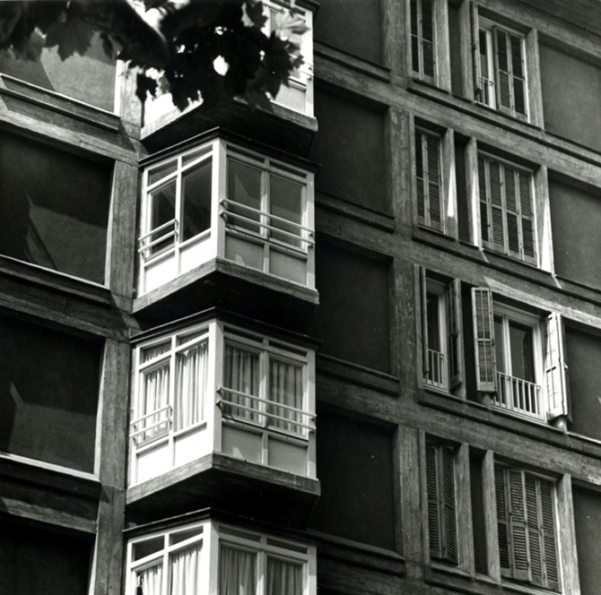 Edificio entre medianeras en el Eixample de Barcelona. El carácter y la escala de los edificios de la zona -la mayoría de principios de siglo- motivaron el diseño de la fachada para conseguir su adecuación al entorno urbano evitando concesiones historicistas. Para lo cual se utilizaron las "tribunas" vidriadas tradicionales como piezas sobrepuestas en fachada.