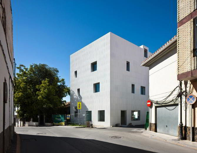 Un edificio de viviendas de alquiler en un pueblo al sur de Granada, donde la Vega empieza a ondularse en el encuentro con las últimas estribaciones de Sierra Nevada. En un solar trapezoidal en un cruce de caminos y con una superficie de edificable de poco más de 100 m2. Uno de los lados, el suroreste es medianero, mientras que los otros tres dan a calles: sureste carretera de Gójar, Noroeste Avda. Carmen Morcillo y Noreste calle Alhambra.