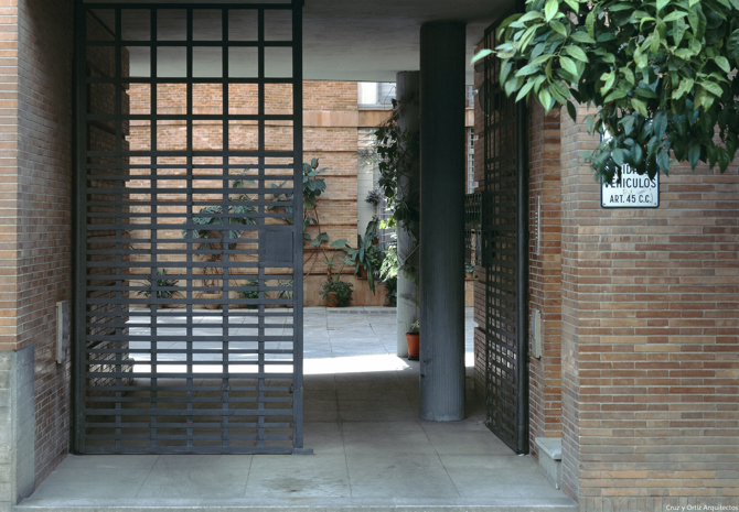 El patio obvia los conflictos que lo rodean, introduciendo al espectador en un mundo aparte. El vacío resuelve así la organización del edificio, delimitando las zonas a ocupar por las viviendas, facilitando la situación de las escaleras e incluyendo, en planta baja, el acceso de los vehículos al sótano y el de los vecinos a los portales.