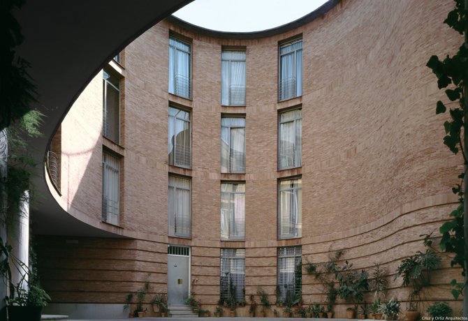 Sobre un solar de forma muy irregular en el centro histórico de Sevilla debía construirse un edificio de 12 apartamentos. Toda la superficie libre se concentró en un patio cuya forma arriñonada resolvía las difíciles condiciones geométricas del perímetro y que al tiempo constituía una figura fuertemente unitaria, capaz de hacer olvidar las múltiples directrices que se ocultan tras ella.