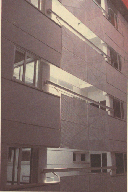 La respuesta dada en el proyecto pretende reconvertir ese patio. Es una constante nuestra en diversos proyectos de viviendas realizados: tratar el espacio interior (residual en tipologías de bloque en H y similares) como elemento aglutinador y de relación entre las viviendas que componen el edificio. Para esto se dispone de un acceso único desde el exterior que vierte directamente al patio; escaleras y ascensores, arrancan de dicho patio. Este se cubre con una cubierta de vidrio traslúcido, y se extiende un toldo bajo ella para amortiguar el soleamiento. La luz que penetra por la vertical de los tendederos se tamiza con celosías. La climatología ayuda a estas decisiones, y el resultado se acerca a los espacios y formas habituales de los edificios residenciales sevillanos en los que el patio efectúa el tránsito entre lo público y lo privado.
