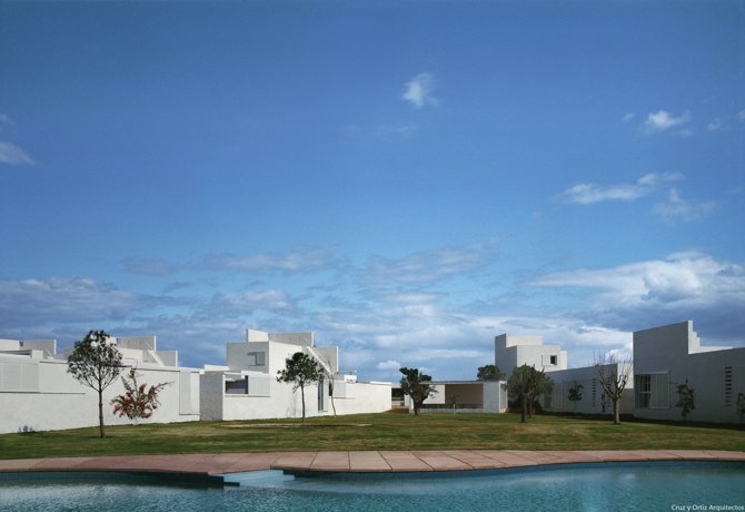 Dentro de una gran urbanización adyacente a la playa, se ha realizado un conjunto de 68 viviendas de temporada.