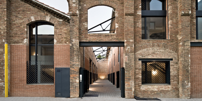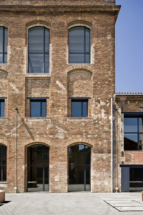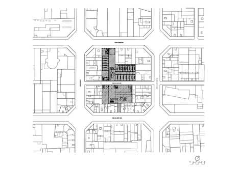 Las oficinas continúan el dibujo de los antiguos volúmenes, de manera que el conjunto define un ecosistema urbano coherente con sus calles y edificios. En lugar de un clásico edificio de oficinas, el proyecto propone una variedad de volúmenes con distintas alturas, niveles, terrazas y techos a dos aguas. Esta distribución hace que convivan de manera flexible los espacios abiertos y cerrados, lo público o semipúblico y lo privado, como si fuera una pequeña ciudad dentro de la ciudad.