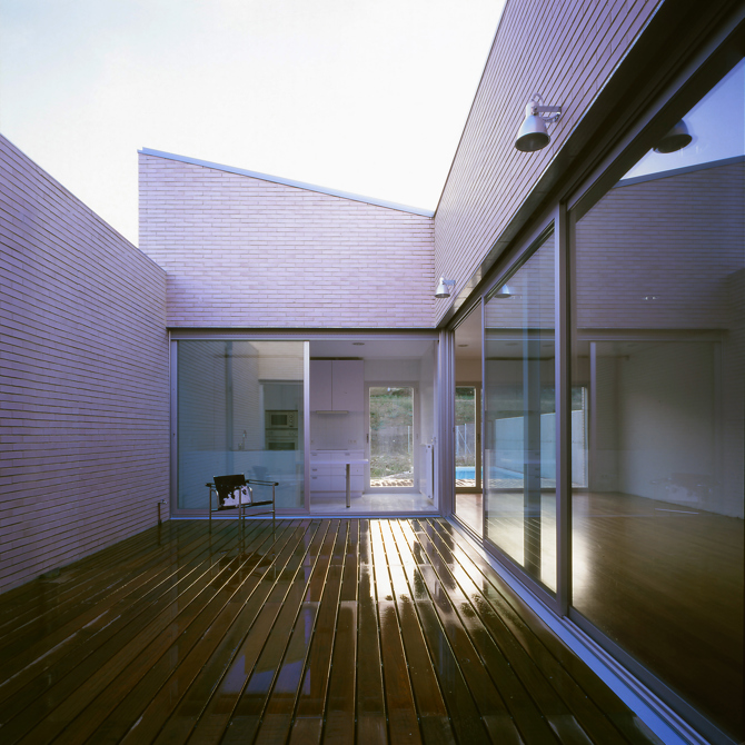 Se plantea entonces el criterio de hacer toda la parcela una casa que ligue interior y exterior en un mismo espacio. La casa dispone de espacios más o menos protegidos de la intemperie, y todos ellos forman un uno que permite ampliar aquellas estancias más tradicionales a los límites de una “organicidad organizada”. Así se incluye a los habitáculos tipológicos de la vivienda tradicional el patio. No es este un patio romano, espacio único que centraliza la casa que desconfía del exterior. Al contrario, aquel viejo patio se disuelve en tres patios distintos para dotar a la casa de una organicidad dinámica capaz de ligar interior y exterior. La casa, que empieza en el mismo límite con la propia calle, dispone de un primer patio que sirve como espacio de intercambio entre lugar-ciudad y el lugar-casa, que ya no espacio-casa. En él se produce el encuentro de la calle con los habitáculos que necesitan de más privacidad y confort. El patio, y con él, la casa, adoptan la necesidad de salvar la diferencia de cotas del perfil del solar. Este ascenso da paso a un segundo patio, el más íntimo, que manifiesta la interiorización de la naturaleza en la casa y que permite construir un nuevo espacio que llamamos “salón de verano” que complementa en épocas estivales al salón clásico, siempre interior a la casa. Este segundo habitáculo abierto se orienta hacia el sur, recibiendo todo el sol que resbala por las cubiertas peinadas a su orientación y que desemboca en dicho patio. Y, por último, queda el tercer patio, cerrado ya solo por muros como el primero, y que envuelve ahora ya una naturaleza dominante.